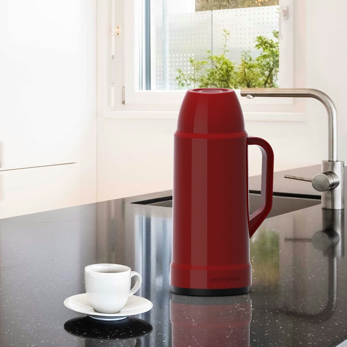 Com tampa copo, sistema antigota, alça reforçada e um design moderno e atual que agrega praticidade e sofisticação ao dia a dia.